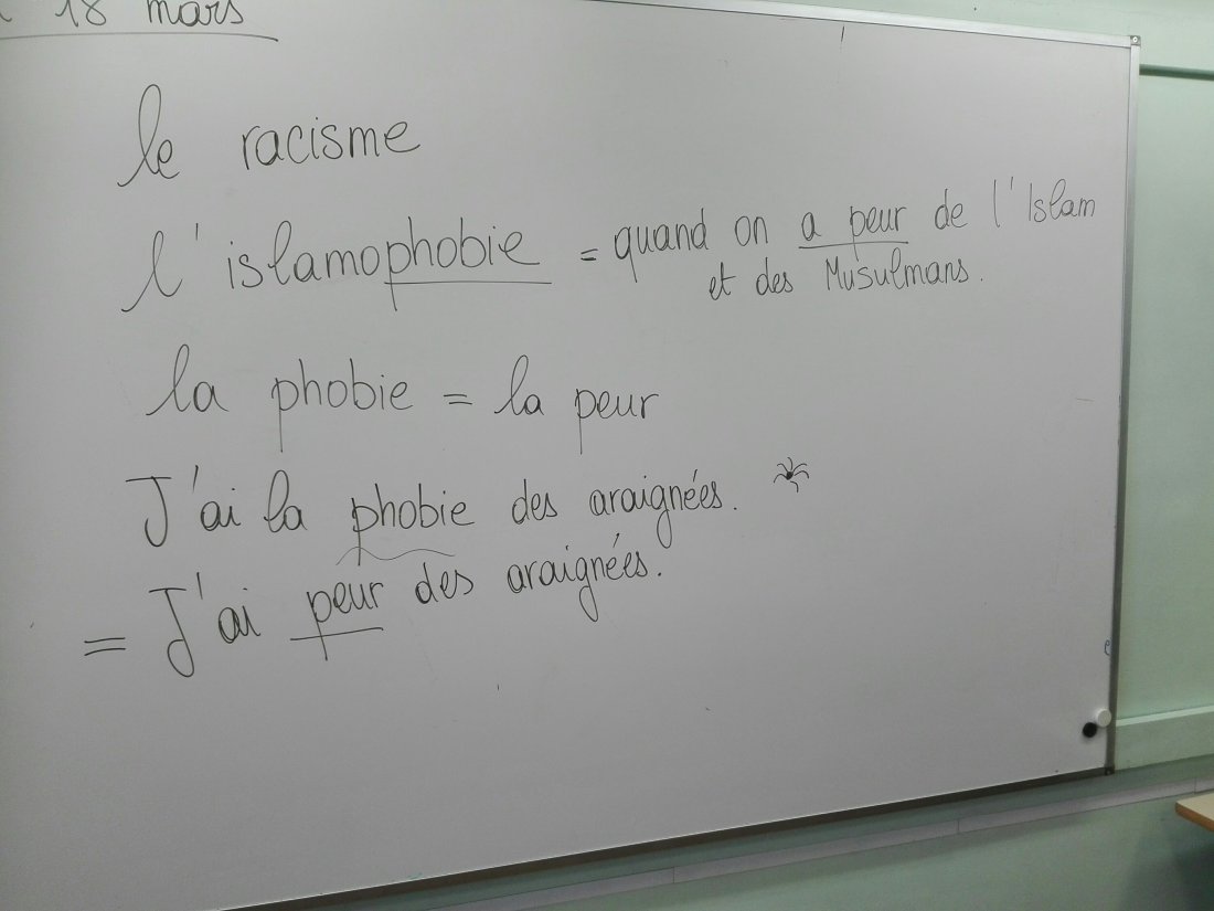 Ensuite, ils choisissent un autre article, sur les attentats islamophobes en Nouvelle-Zélande. On explique le sens du mot « islamophobie ».