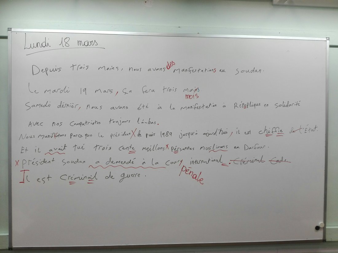 Ensuite, nous avons discuté des différentes façons d’exprimer son mécontentement face au gouvernement. Je fais la médiatrice, donne quelques indications sur la naissance des manifestations il y a plusieurs mois, mais je ne donne jamais mon opinion.