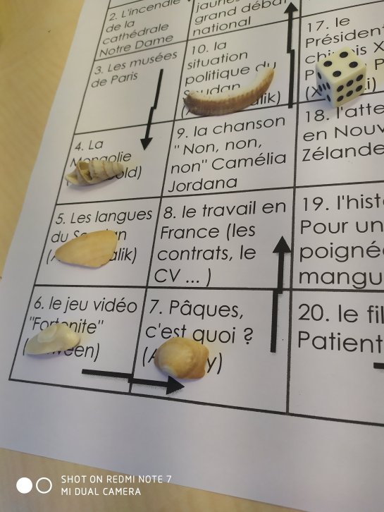 J’ai donc décidé de travailler sur les différents thèmes et supports abordés depuis janvier, en classe. Des thèmes, souvent arrivés au cours des discussions, des « Quoi de neuf », de la lecture du journal et des textes ou de supports que j’ai proposés…