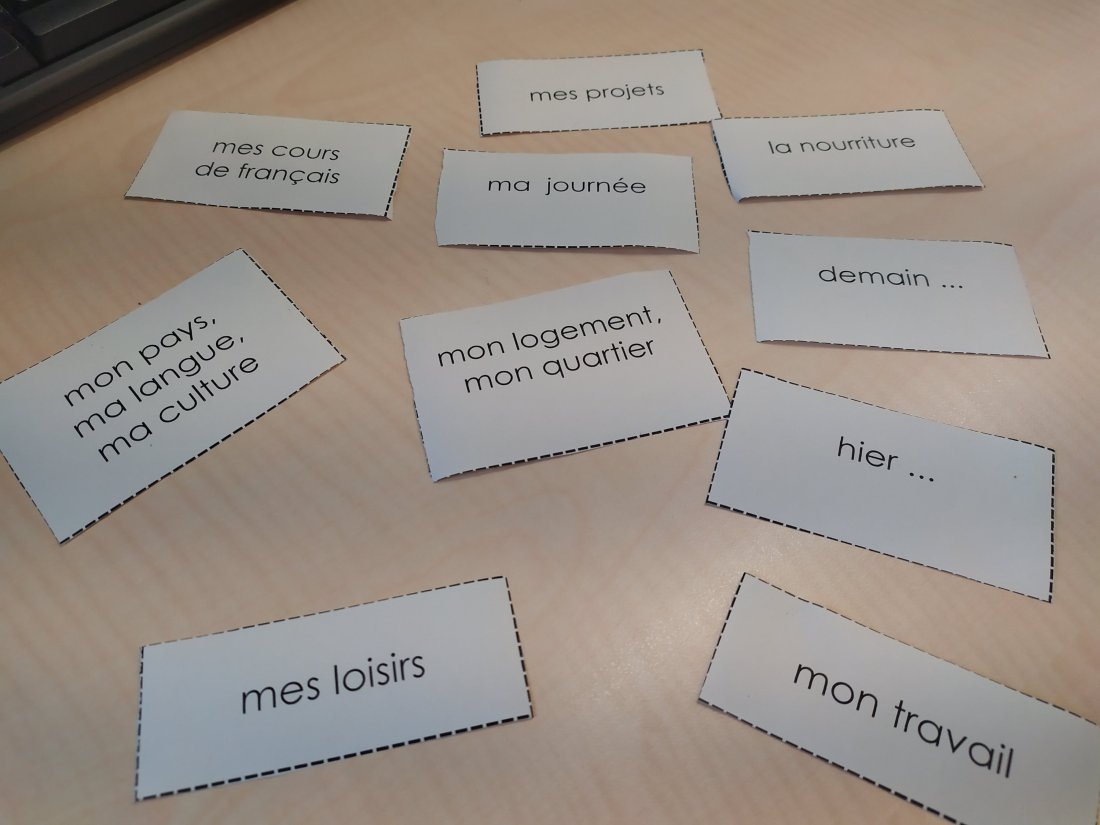 Lundi et aujourd’hui, en cours de FLE A2/peu scolarisés, nous avons commencé à revoir les thèmes de l’année.