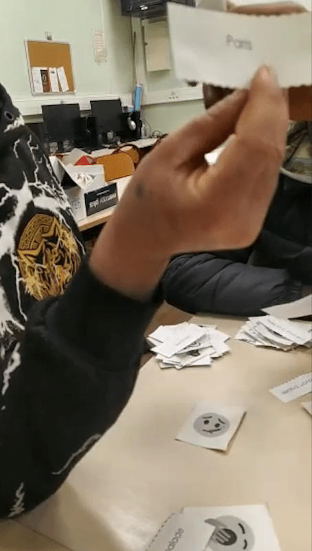 6. On ajoute ensuite les étiquettes-mots/phrases sur la table