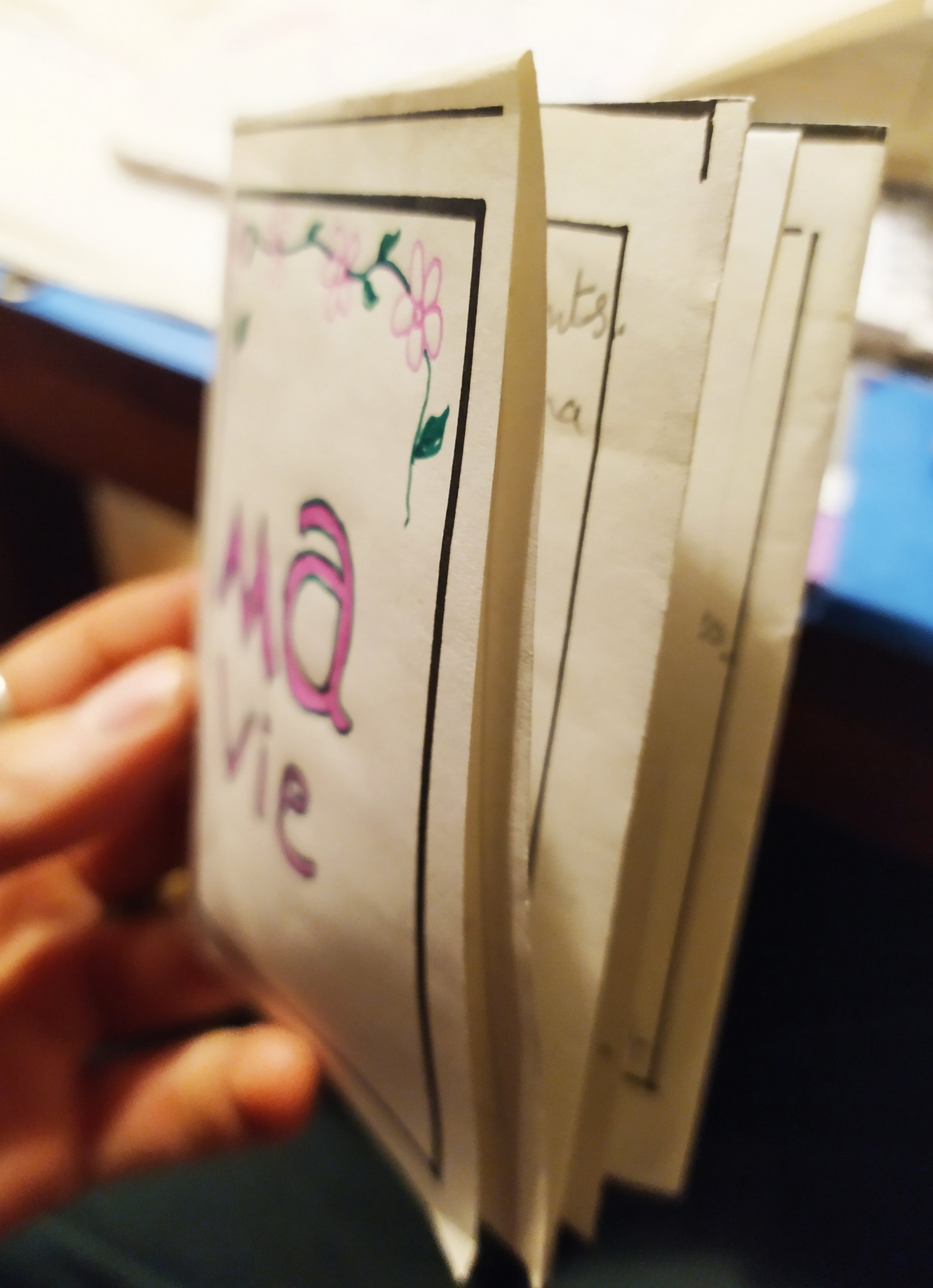 J’ai proposé aux étudiants de mon groupe très enthousiaste, de niveau B2 (Cours de la Mairie de Paris) de faire un Petit Livre.