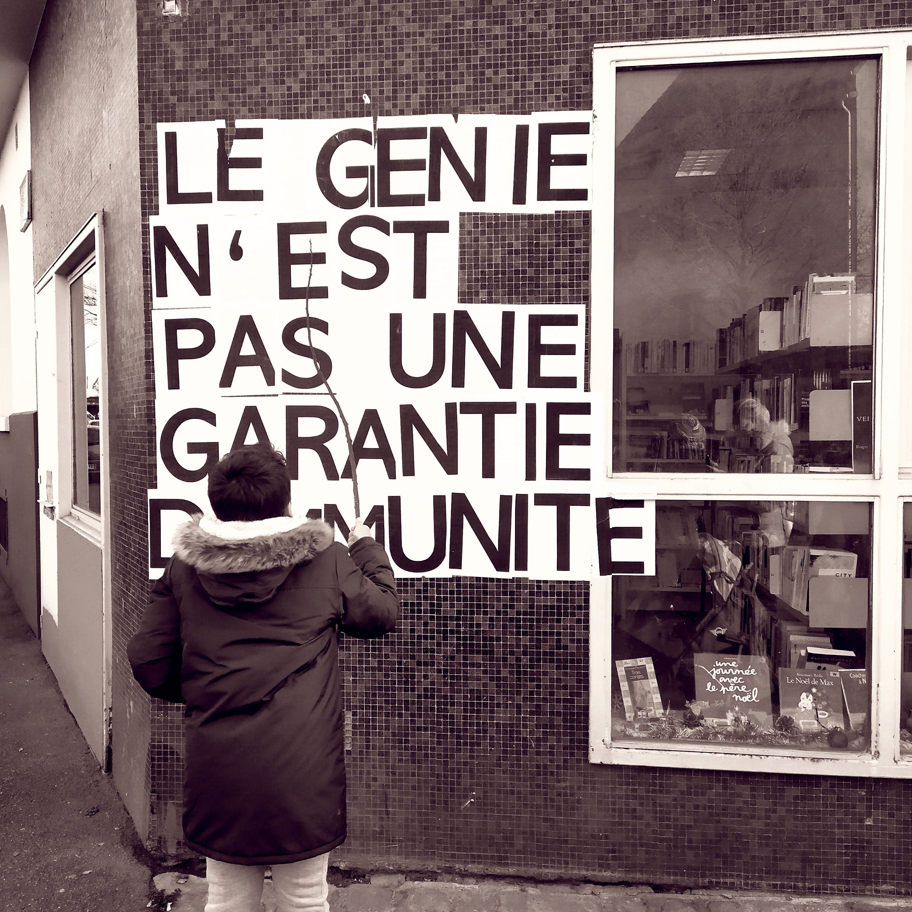 En période de grève des professeurs, le fils d’une des femmes était avec nous. Il était très content d’aller se promener et de lire des messages sur les murs.